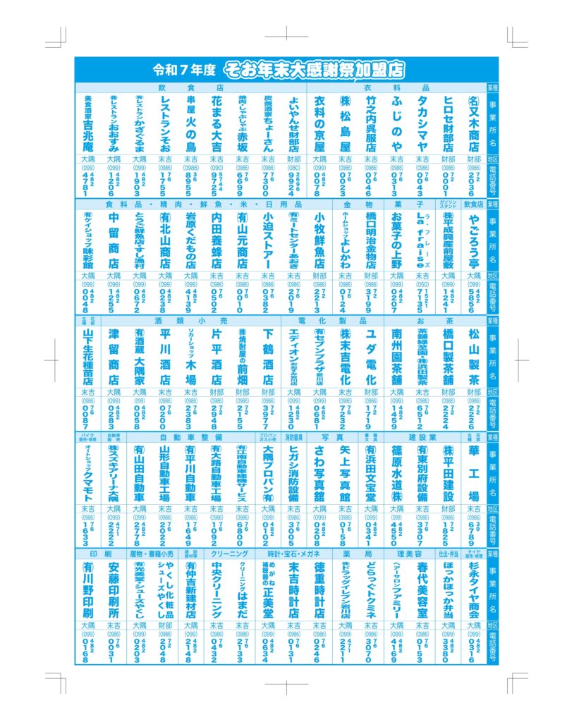 ♦期間中、曽於市内の「そお年末大感謝祭加盟店」でお買物(ご利用)をすると、抽選券がもらえます。